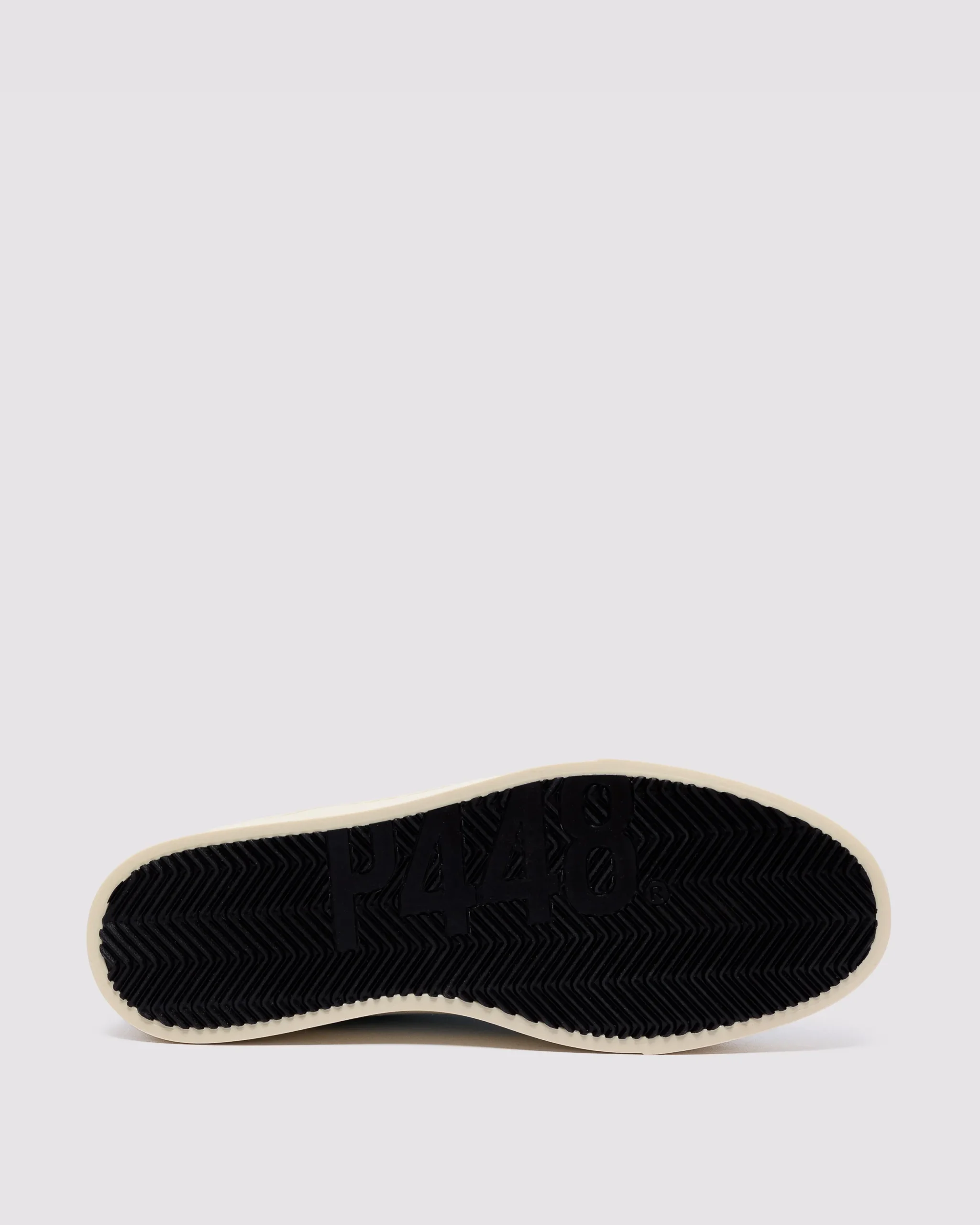 We recommend using a lightly damp cotton or microfiber cloth to gently brush dirt away. Ensure shoes are completely dry before wearing again and are not dried in direct sunlight or high heat sources to avoid cracking the leather. Condition the leather once a month to protect against damage so you can wear P448 for years to come.